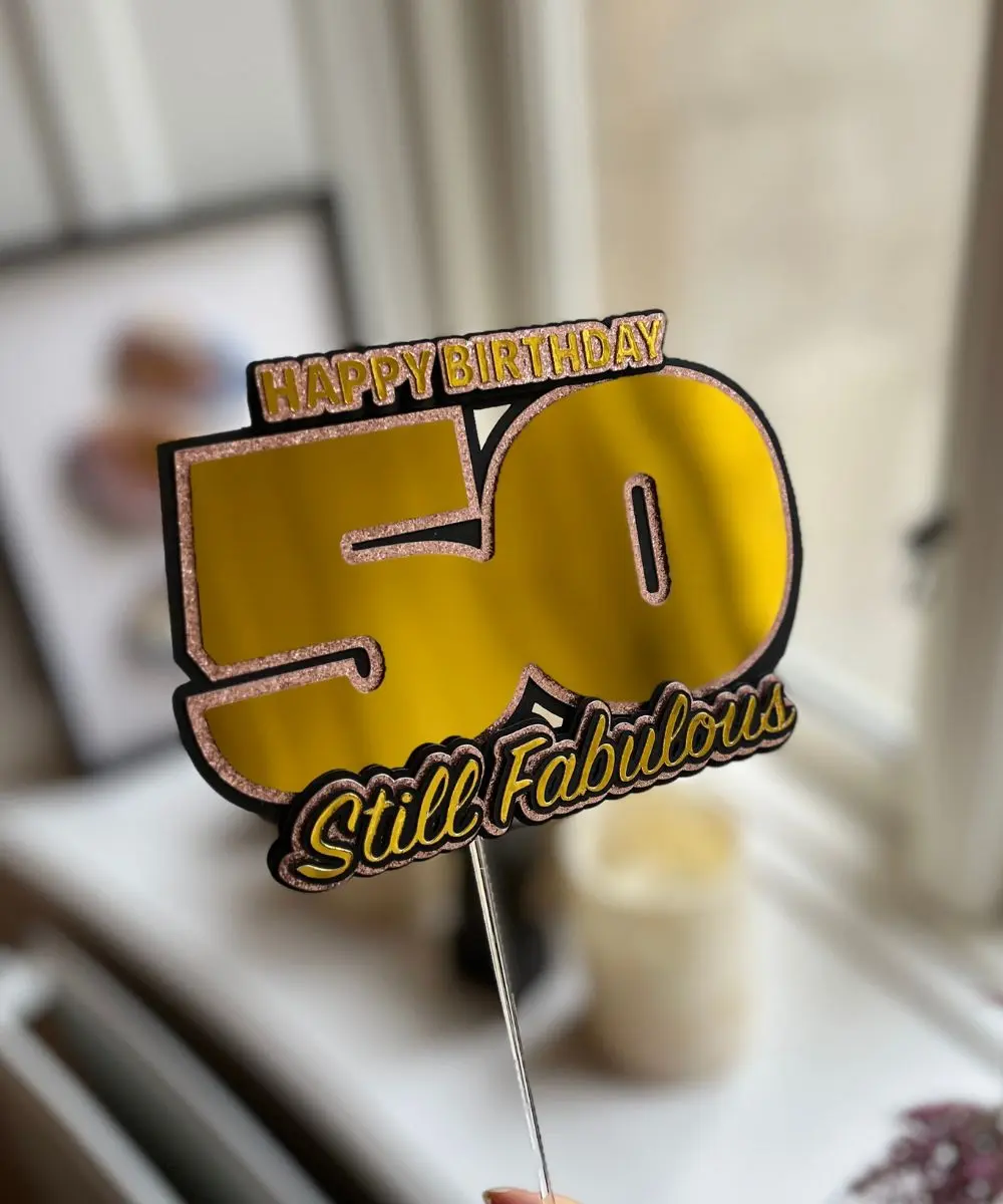 Hver caketopper laves med kærlighed og kan tilpasses præcis til den alder og tekst, du ønsker, så den passer perfekt til fødselsdagens eller festens æresgæst(er).
